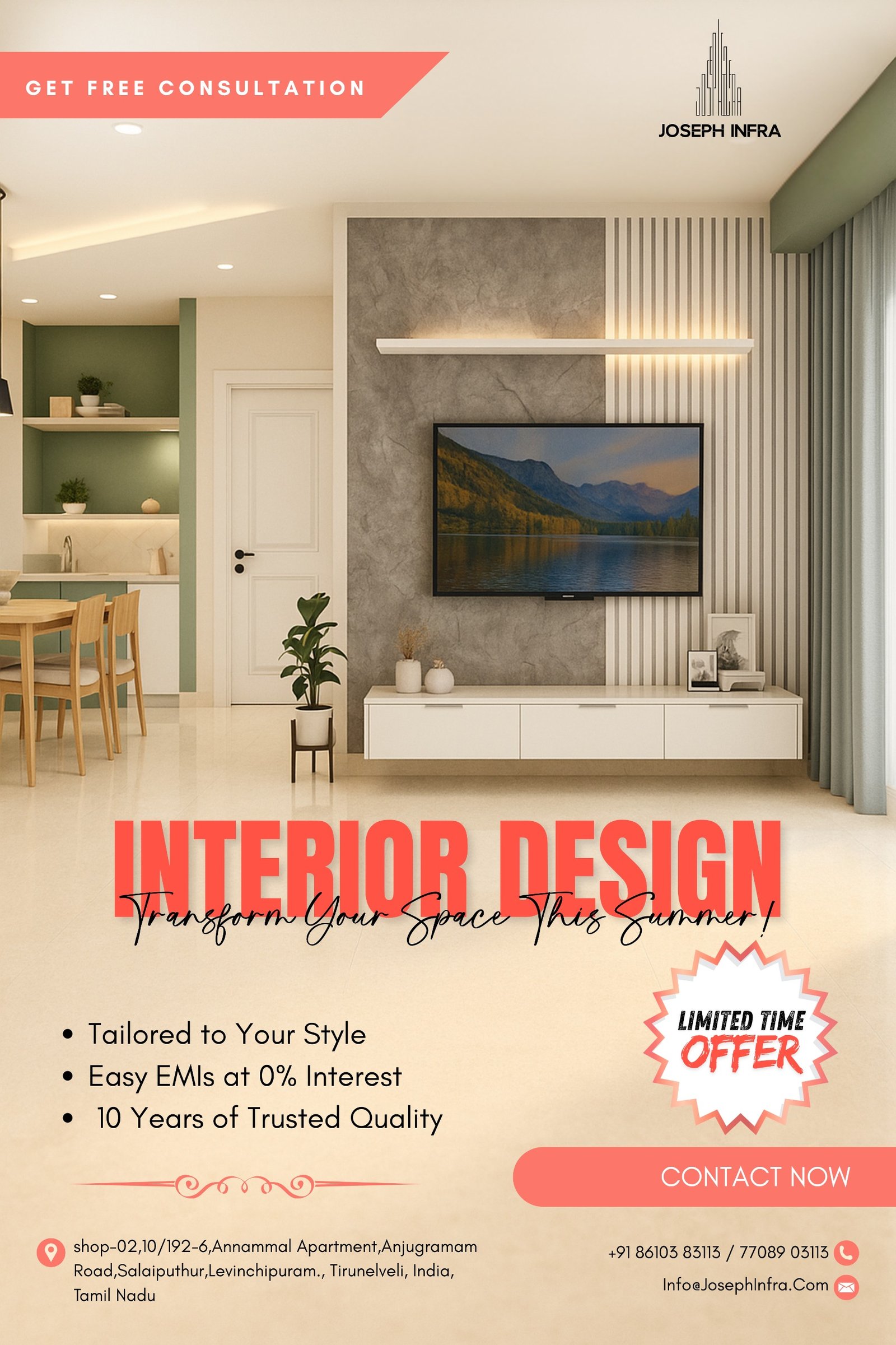“Thanks to the skilled building contractors from Joseph Infra, my dream home became a reality. The 3D interior design was a game-changer, and the free online floor plan creator made the process smooth. They truly brought my home construction vision to life”